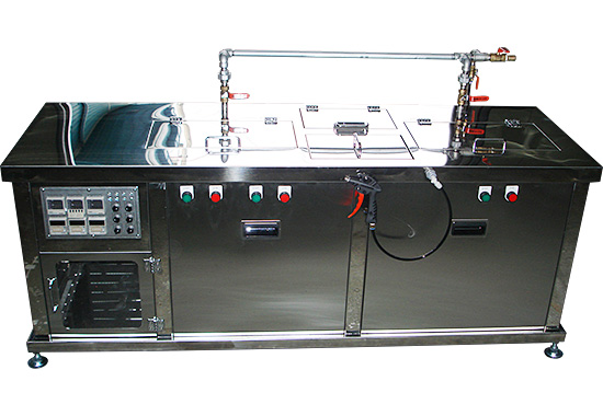 우주 다조식 초음파 세척기는 탱크(욕조)내에 초음파 세척, 헹굼, 증기세척, 건조 등으로 구성되어 있습니다.